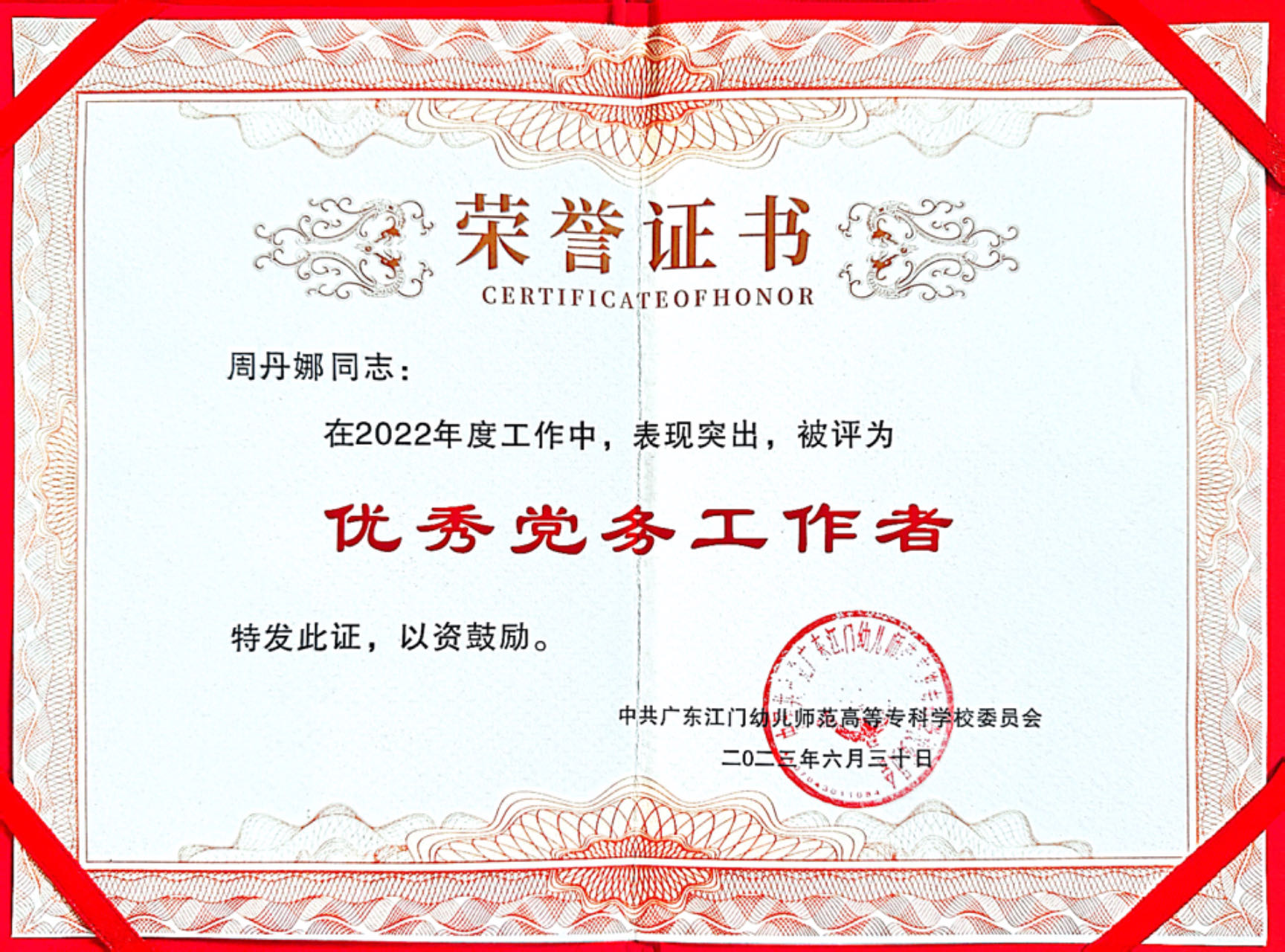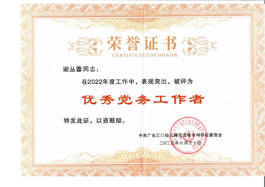 近一年来,支部培育创建工作取得丰硕成果。支部党建课题获广东省高校党的建设研究会立项;支部教师指导学生参加暑期社会实践入选国家级暑期社会实践项目;支部在学校2022年七一表彰中获先进基层党组织。